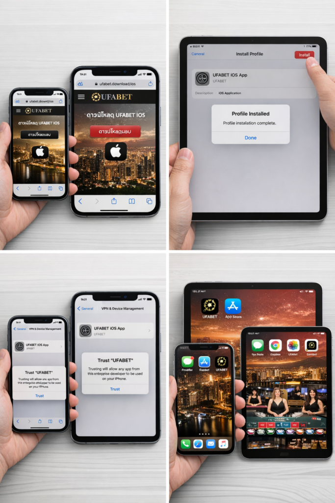 - ใช้ Safari (เบราว์เซอร์หลักของ iOS) เข้าไปยังลิงก์ทางการของ UFABET เพื่อเริ่มดาวน์โหลด